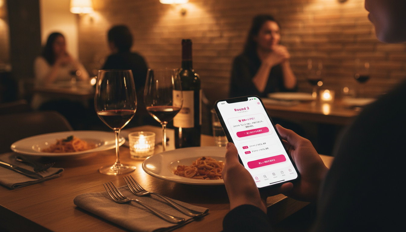 そんな時、スマートフォンひとつで二人の気持ちを「見える化」し、最適な次の行動を提案してくれるカップル向け本音マッチングアプリ**「Round 2 ~本音の着地点~」**が登場しました。